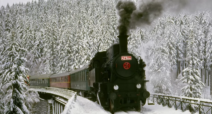 Zimowe przejazdy specjalnym, pociągiem retro prowadzonym przez zabytkową lokomotywę były największą atrakcją Anielskiego Weekendu z Parowozem. Pociągi jeździły na trasie Martinice w Karkonoszach - Rokytnice nad Jizerou.