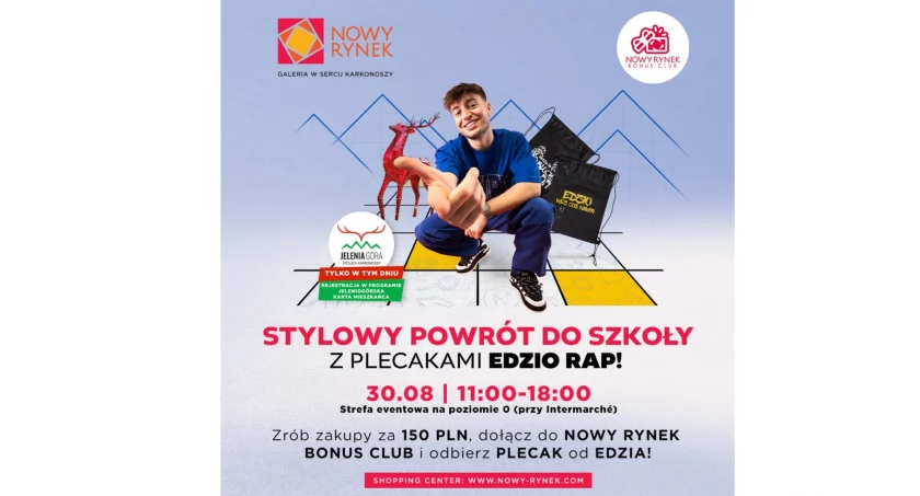 Ostatnia sobota wakacji w Galerii Nowy Rynek upłynie w atmosferze radości, kreatywności i szkolnych inspiracji. Już 30 sierpnia centrum zaprasza na wyjątkową akcję Back to School z warsztatami, rodzinnymi atrakcjami i limitowanymi gadżetami od Edzio Rap – jednego z najpopularniejszych twórców młodego pokolenia.