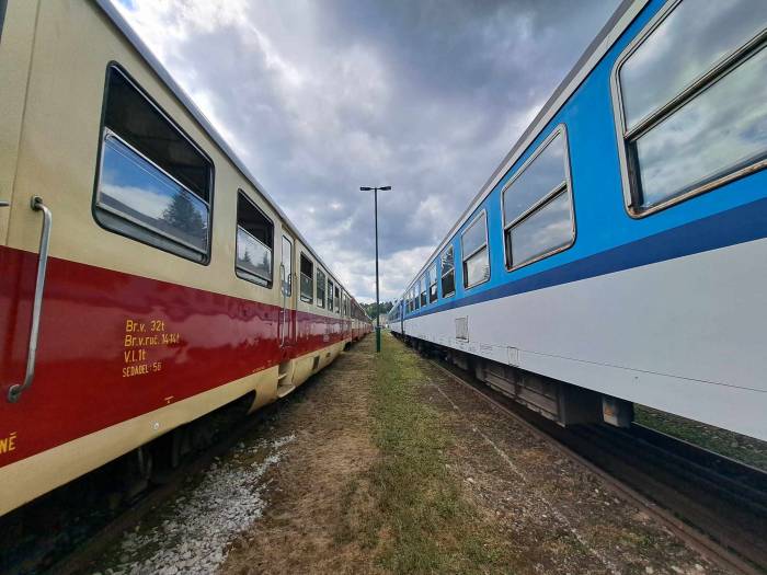 W składzie pociągu specjalnego znalazł się ponadto unikatowy już dziś motorowy wagon silnikowy M240.056 - popularna singrovka, która wspierała lokomotywę. Te szynowe autobusy produkowane były w latach 1959 - 1964 w zakładach Tatra Studénka. Po czeskich torach jeździło w sumie 122 takie wozy.