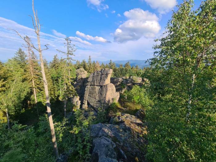 Bobrowe Skały to jeden z najlepszych punktów widokowych w Górach Izerskich skąd widać Kotlinę Jeleniogórską, Karkonosze i Góry Izerskie.