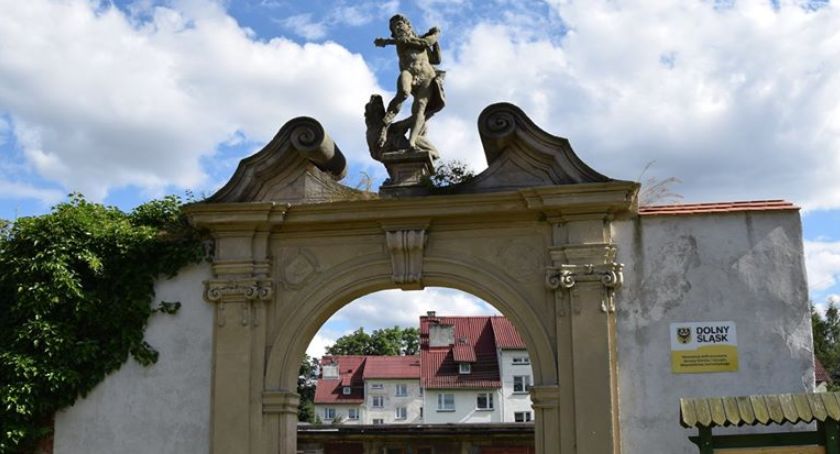 Obok ruin zamku rycerskiego w Starek Kamienicy, znajduje się inny ciekawy zabytek architektoniczny. To barokowa brama wjazdowa do nieistniejącego już ogrodu pałacowego, zwieńczona figurą mitycznego Herkulesa.