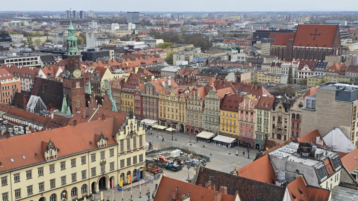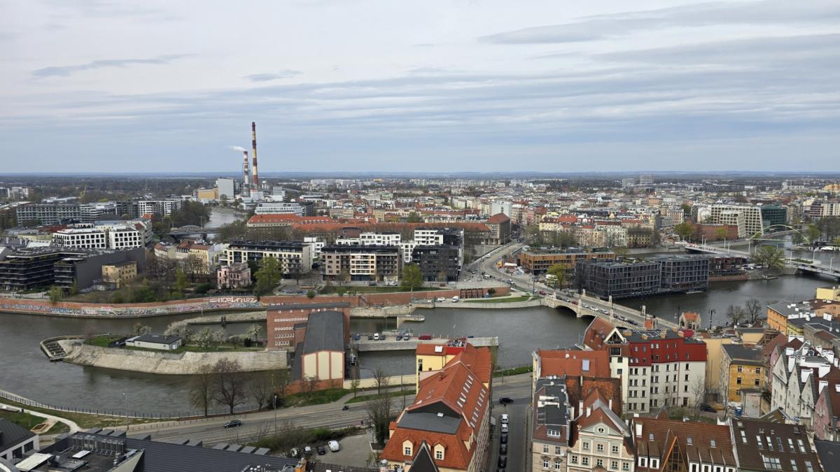 To widok, który pozwala objąć Wrocław w całości – od zwartego centrum po odległy horyzont.