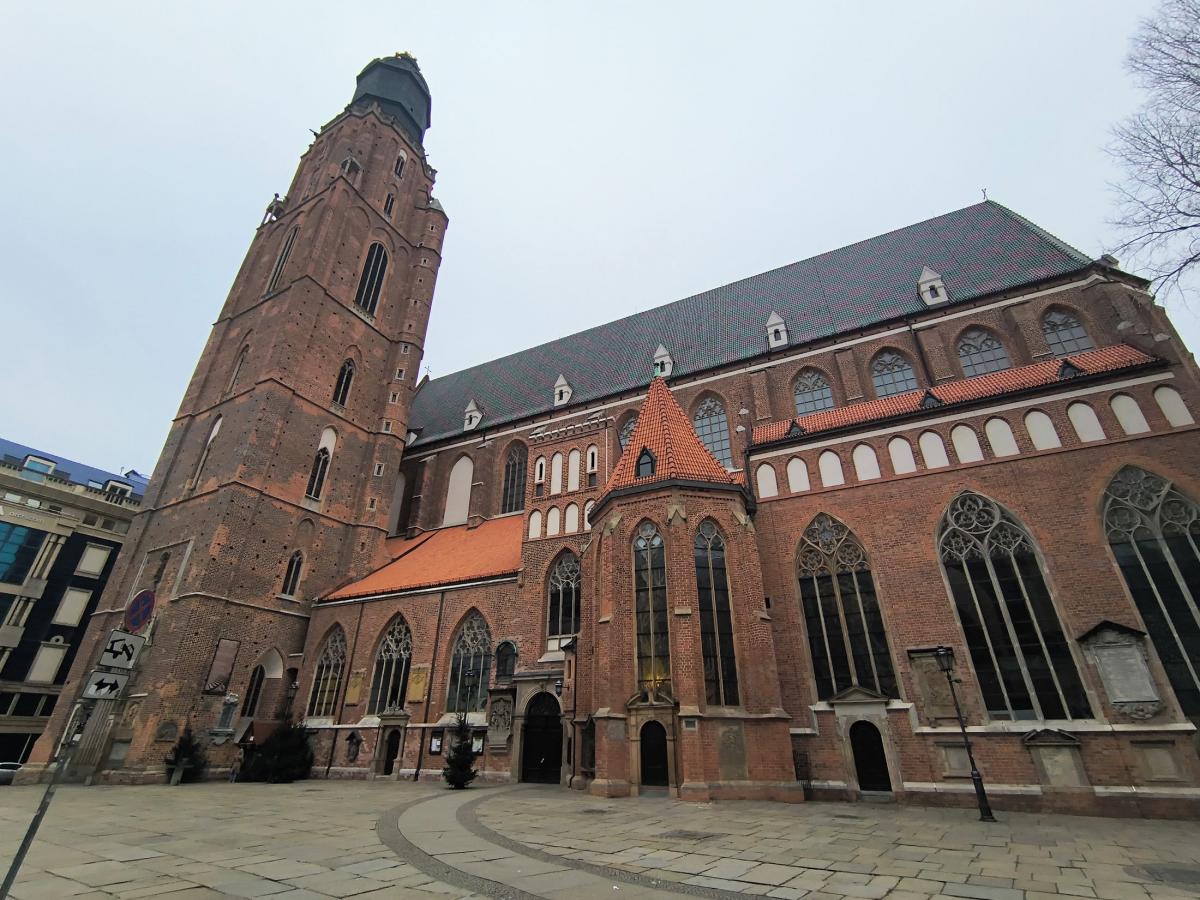 Najbardziej wyrazistym elementem Bazylika św. Elżbiety we Wrocławiu jest jej wieża – ponad 90 metrów wysokości, u podstawy mury dochodzące do trzech metrów grubości. To nie jest lekka, strzelista forma, tylko ciężka, ceglana konstrukcja, która ma po prostu stać i wytrzymać.