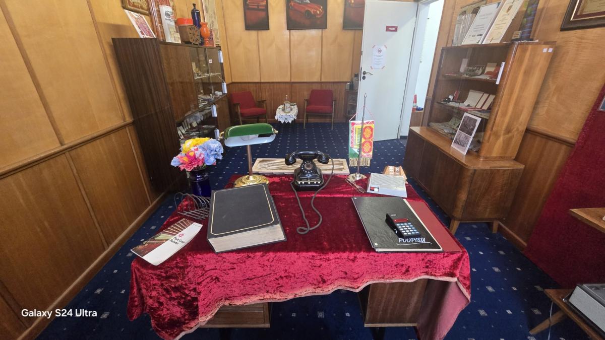 Jest i pokój prezesa – biurko ciężkie jak ówczesna biurokracja, na nim telefon z tarczą i czerwony notes, w którym można było znaleźć „ważne kontakty”. W szafce kryje się butelka wiśniówki – obowiązkowy element każdej służbowej narady. Sekretarka w sąsiednim pomieszczeniu ma maszynę do pisania, której stukot był nieodłącznym dźwiękiem tamtych czasów.
