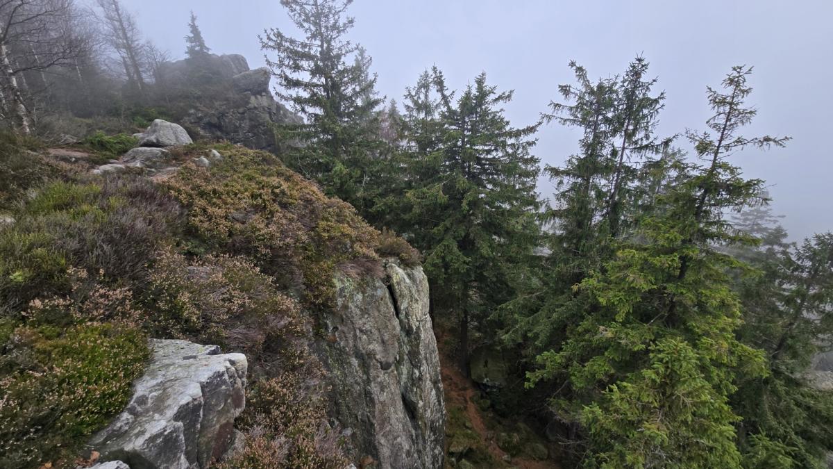 Narożnik, położony na wysokości około 849 metrów n.p.m., stanowi jeden z najbardziej charakterystycznych skalnych tarasów Gór Stołowych. Choć jest blisko drogi i popularnego parkingu na Lisiej Przełęczy, nie stracił swojego dzikiego charakteru – wręcz przeciwnie. Krótka, kamienista ścieżka prowadząca na szczyt od razu przypomina, że tu rządzi natura, a człowiek jest tylko gościem. Po kilku minutach podejścia wychodzi się na skalny próg, gdzie pionowe ściany opadają kilkadziesiąt metrów w dół w kierunku południowym i zachodnim. Piaskowiec odsłania tu całą swoją warstwową budowę: popękane, wyślizgane przez wodę bloki tworzą naturalny balkon z widokiem na całą platformę stołowogórską.