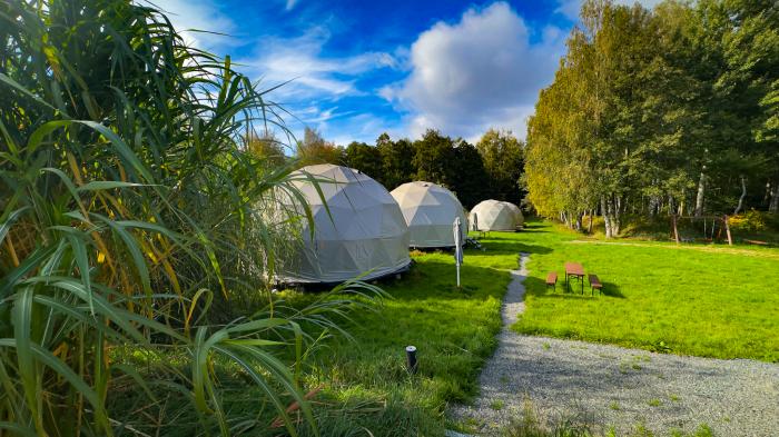 Latem dostępne są namioty glampingowe, idealne dla mniejszych grup. W pełni wyposażone, klimatyzowane i z widokiem na las, łączą komfort hotelowy z naturą. Ten glamping z basenem jest doskonałą opcją dla wszystkich, którzy cenią styl slow life i chcą poczuć klimat prawdziwego wypoczynku w naturze, bez rezygnacji z wygody. Jesteście ciekawi - sprawdźcie ten glamping w Karkonoszach.
