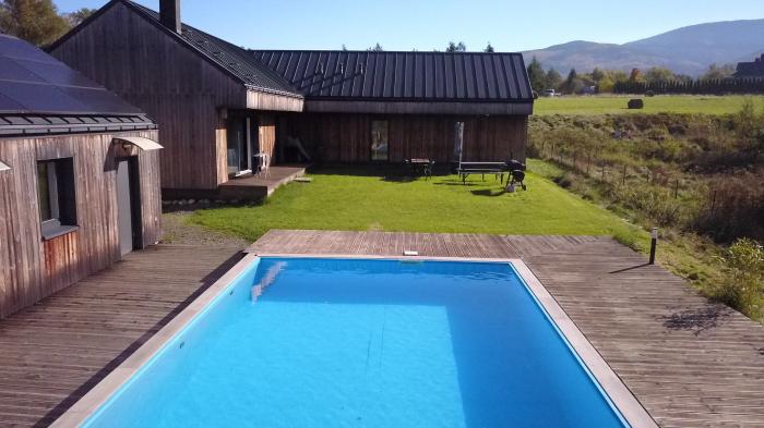 Wnętrze domu sprzyja wspólnemu wypoczynkowi: przestronny salon, kuchnia i jadalnia zachęcają do wspólnego gotowania i rozmów. Każdy z czterech 4-osobowych pokojów ma prywatną łazienkę, telewizor, lodówkę. Wyposażenie podkreśla komfort i standard tego miejsca. Z tarasu widać góry, w ogrodzie czeka balia z gorącą wodą oraz podgrzewany basen. Są to unikalne udogodnienia, których próżno szukać w typowych noclegach w Karkonoszach.