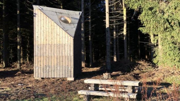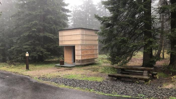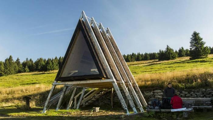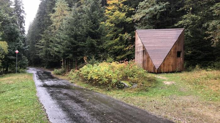 „Przytulny domek” może być uproszczonym opisem tej naprawdę przytulnej konstrukcji, która stoi na miejscu spalonej boudy Klínová. Konstrukcja oparta jest na archetypie schronu. Stoi na długich nogach 2 metry nad ziemią, dzięki czemu jest łatwo dostępny nawet zimą, kiedy otoczenie będzie pokryte śniegiem. Latem można schować rowery pod konstrukcją lub powiesić hamak i cieszyć się pięknym widokiem na dolinę.