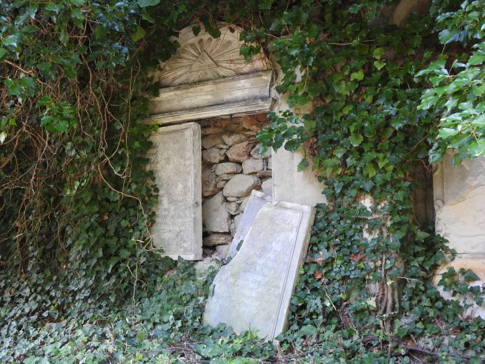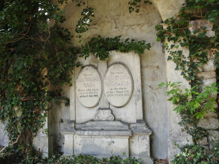 Podwójny nagrobek z dwoma owalnymi płytami Ernsta Wilhelma Waltera, urodzonego 14 maja 1823 roku a zmarłego 14 lipca 1904 roku oraz jego żony Ernestine Walter zd. Ende, urodzonej w styczniu 1836 roku a zmarłej w 1913 roku.