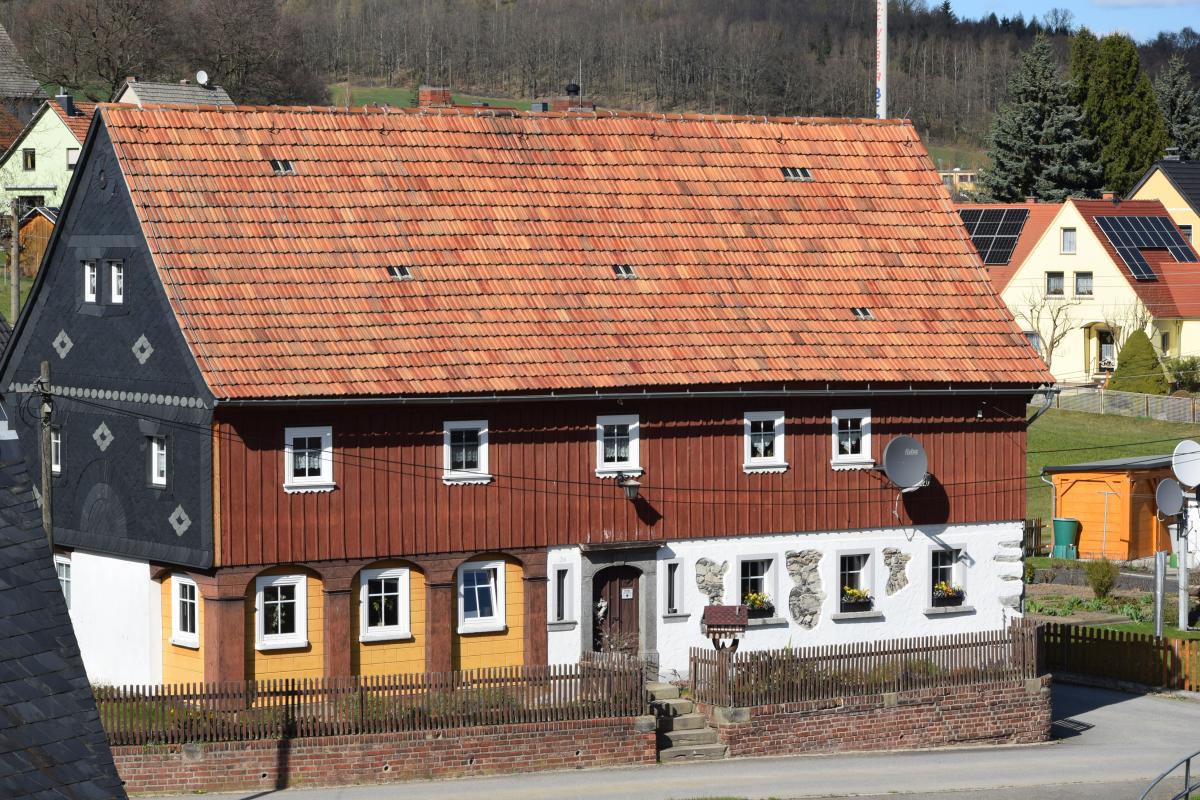 Z tym układem ściśle wiąże się zabudowa. Spitzkunnersdorf należy do obszaru, w którym dominują domy przysłupowe – charakterystyczne dla Górnych Łużyc konstrukcje łączące elementy słowiańskie i niemieckie. Parter, często zrębowy, oddzielony jest od konstrukcji nośnej drewnianym „przysłupem”, który przejmuje ciężar piętra i dachu. Dzięki temu budynki były bardziej trwałe i odporne na odkształcenia. W praktyce dawało to też dużą elastyczność – część mieszkalna, warsztat i pomieszczenia gospodarcze mogły funkcjonować w jednym obiekcie. Do dziś zachowało się tu wiele takich domów, co sprawia, że wieś jest jednym z czytelniejszych przykładów tej formy zabudowy w regionie.