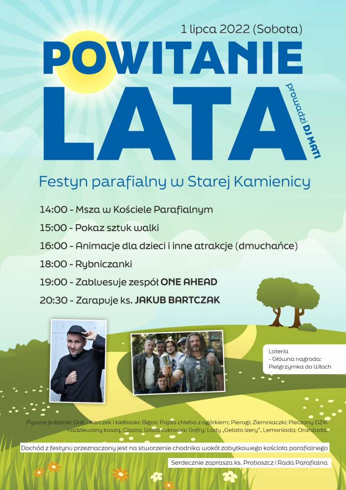 1.07 zapraszamy wszystkich na teren parafii w Starej Kamienicy, gdzie czekać będzie wiele atrakcji w ramach Festynu Parafialnego.