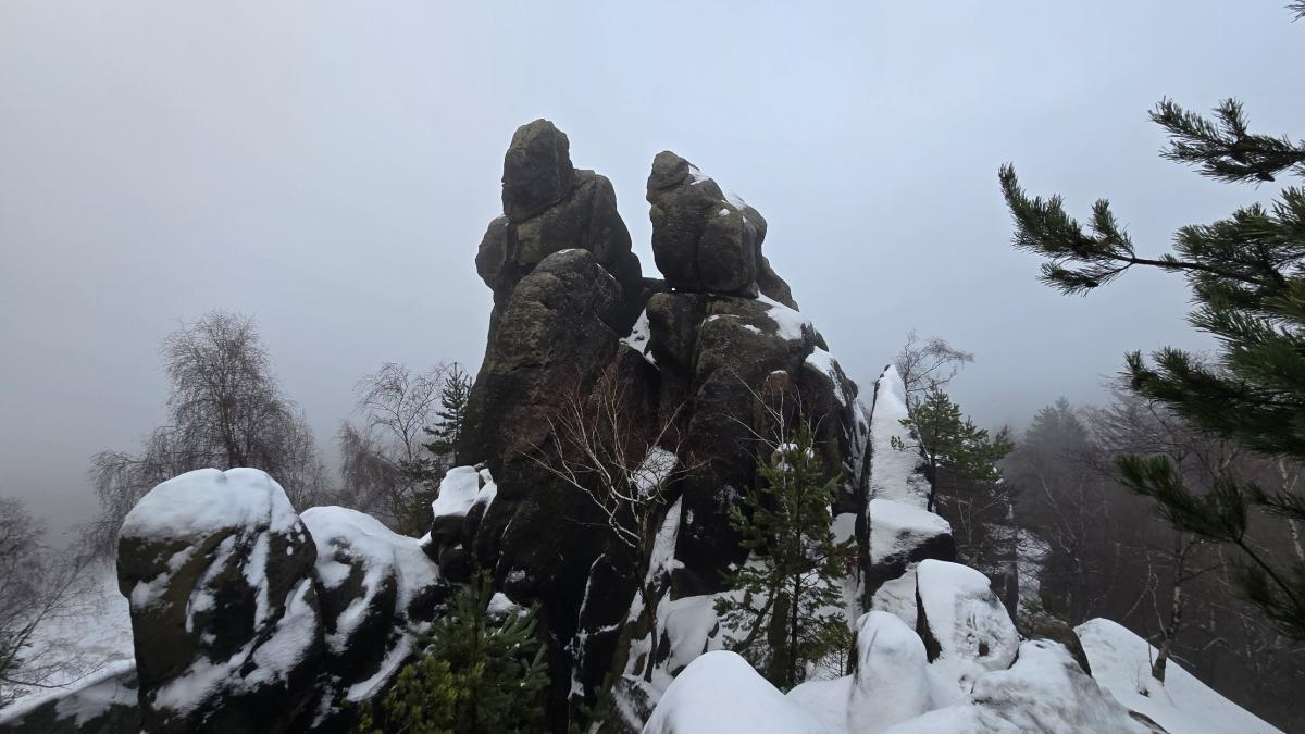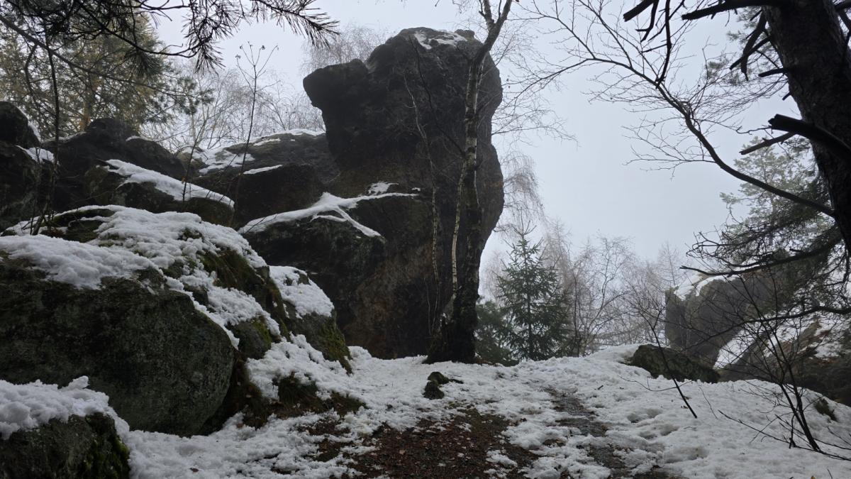 Dla zwykłych turystów – bez liny i sprzętu – Vraní skály są równie ciekawe. Z platform i polanek pod skałami rozciąga się widok na Krásný důl, Horní Sedlo oraz dalsze partie Łużyckich Gór. To także dobre miejsce na krótkie, chłodne zimowe wędrówki: śnieg w tych rejonach potrafi trzymać się dłużej niż w Kotlinie Jeleniogórskiej, a mgła wgryza się w las w sposób, którego nie da się pomylić z niczym innym.