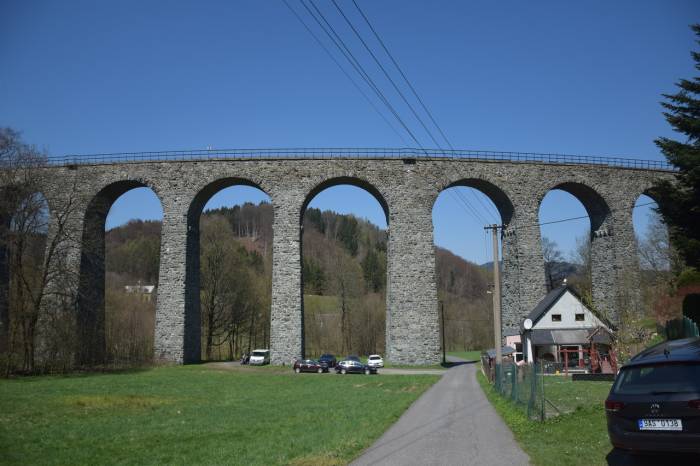 Wiadukt jest częścią linii kolejowej Liberec – Česká Lípa, która została oddana do użytku w 1900 roku jako ostatni odcinek dawnej kolei Ústecko-Teplickéj. Linia kolejowa przebiega tu na wysokości około 30. metrów nad ziemią a sam wiadukt ma około 200 metrów długości i wspiera się na 14. łukowych filarach. Przypomina nieco rzymski akwedukt.