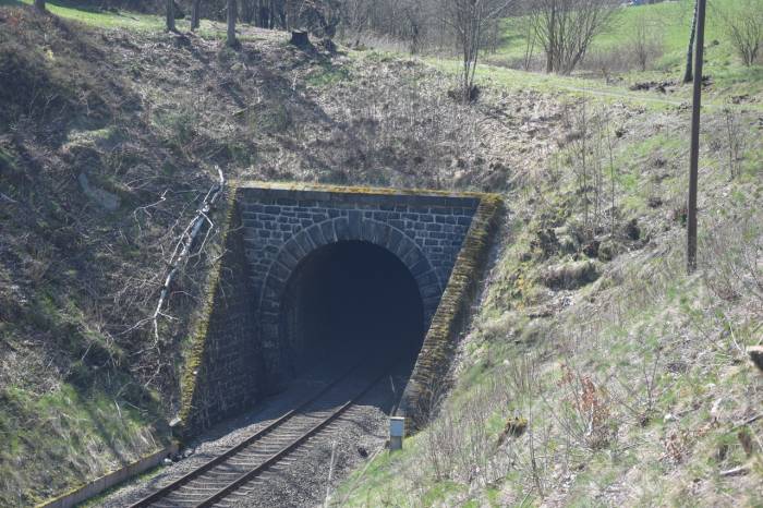 Wiadukt nie prowadzi prosto, ale po łuku. Podczas budowy kolei jej konstruktorzy musieli pokonać jeszcze jeden problem techniczny - grzebień Ještědu o wysokości 700 m - w ten sposób oprócz wiaduktu, powstał tunel o długości 802 m, który zaczyna się jeden kilometr od stacji kolejowej Novina i kończy bezpośrednio przed stacją Křížany.