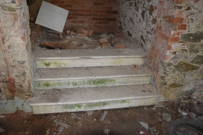 Wnętrze pałacu to już kompletna demolka. Skute tynki, zerwane posadzki, rozwalone ściany. To co się tutaj działo nie przypomina remontu. Podobne zdanie musiał mieć Wojewódzki Konserwator Zabytków. W 2008 roku zarzucił on właścicielowi, że: