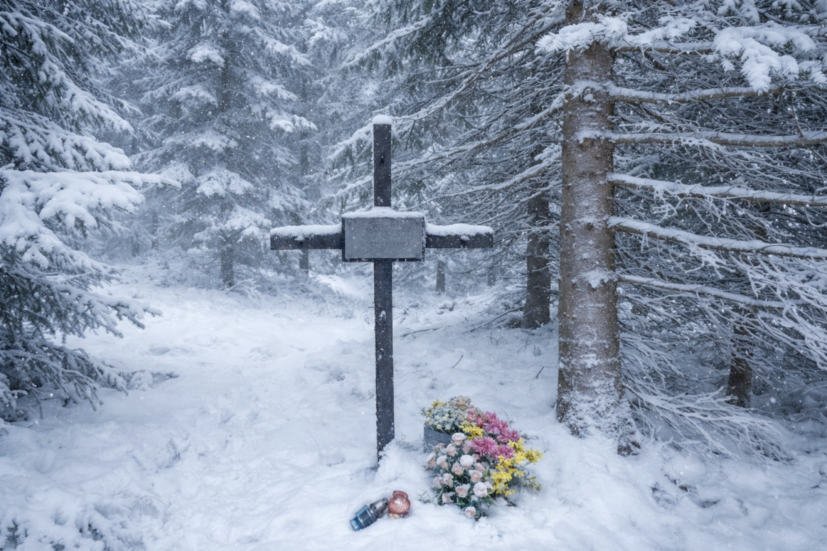 Krzyż przy drodze na Smědavę.Zapomniana tragedia na izerskiej drodze.