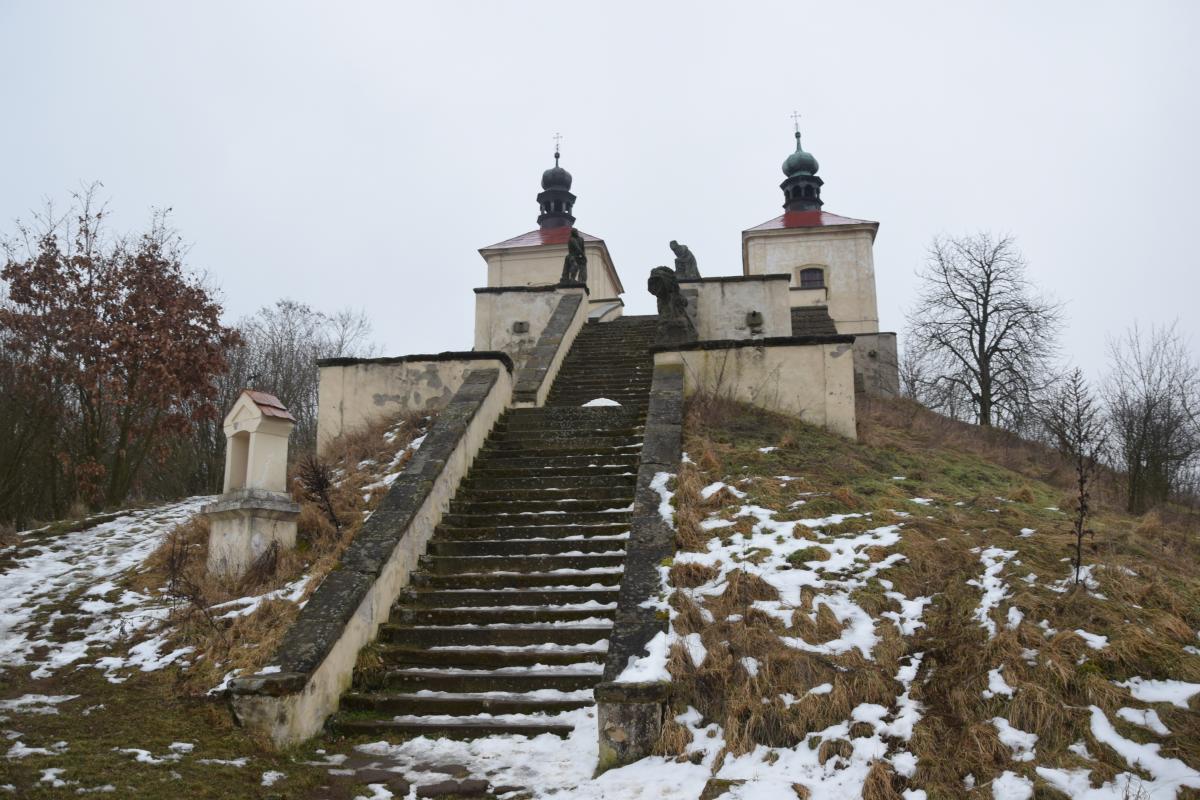 Między schodami a horyzontem. Zimowa wizyta na kalwarii w Ostrém