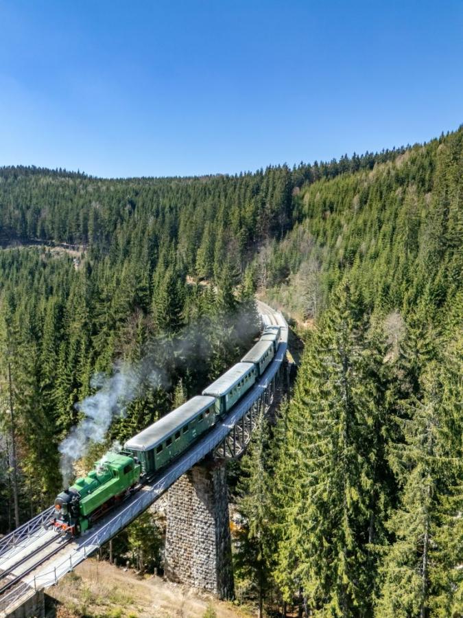 Zdjęcia Parowozem przez Izerę. Historyczny skład z lokomotywą parową wraca na trasę Korenov–Harrachov - fotorelacja