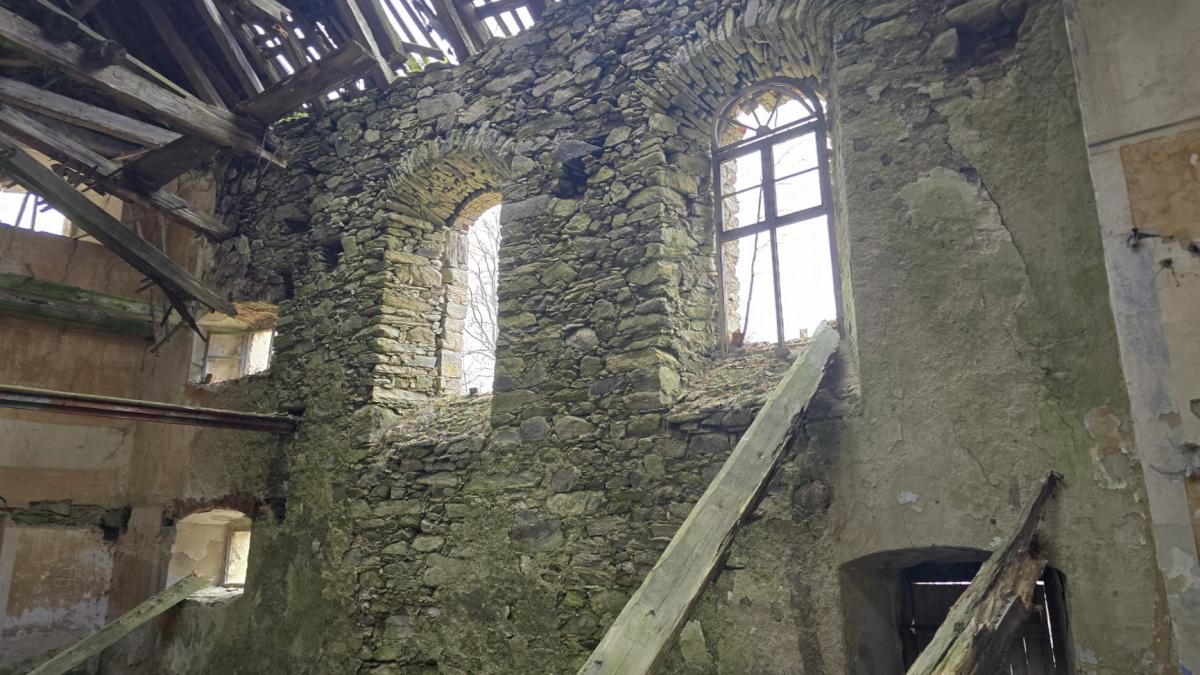 Ruina kościoła w Janowej Górze. Miejsce opuszczone przez ludzi.