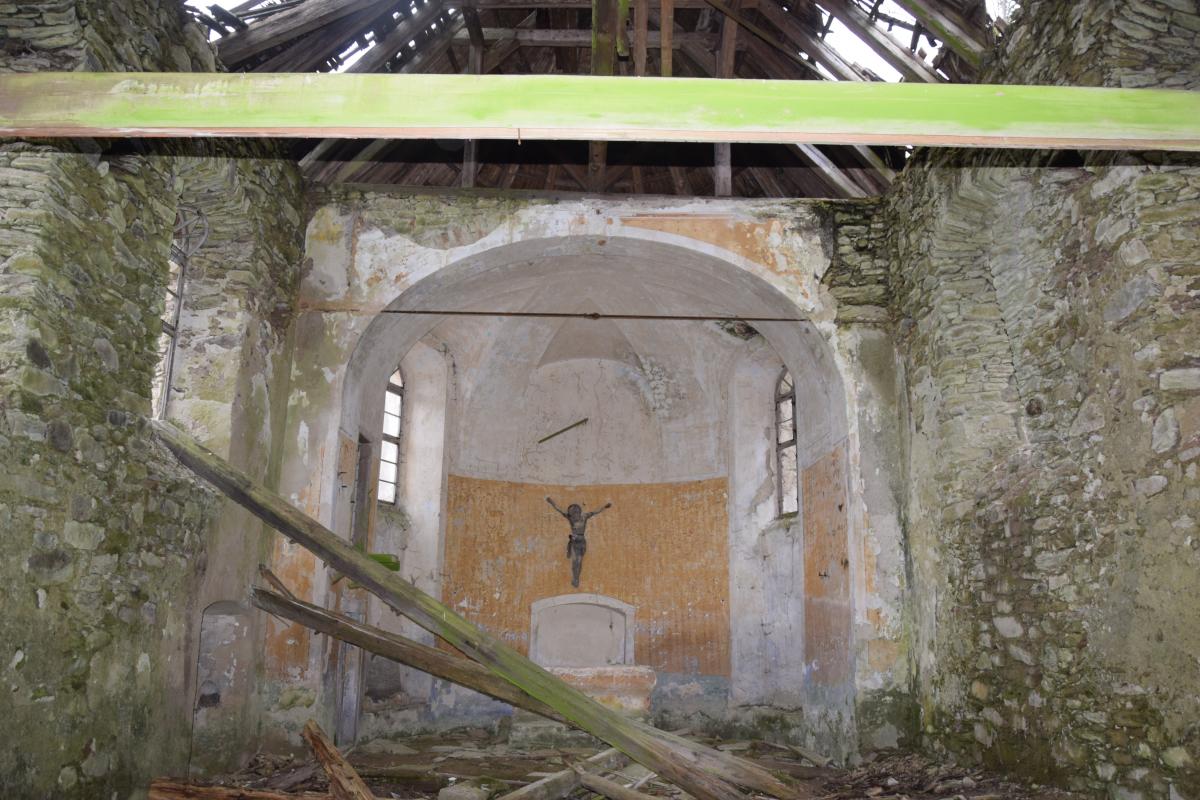 Ruina kościoła w Janowej Górze. Miejsce opuszczone przez ludzi.