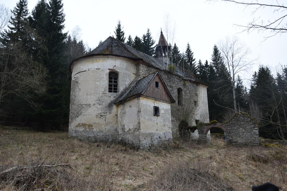 Ruina kościoła w Janowej Górze. Miejsce opuszczone przez ludzi.