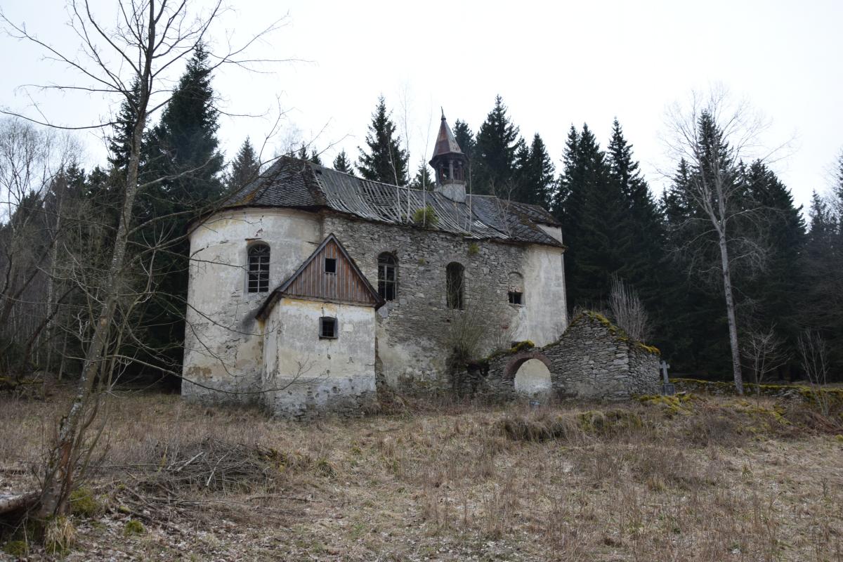 Ruina kościoła w Janowej Górze. Miejsce opuszczone przez ludzi.
