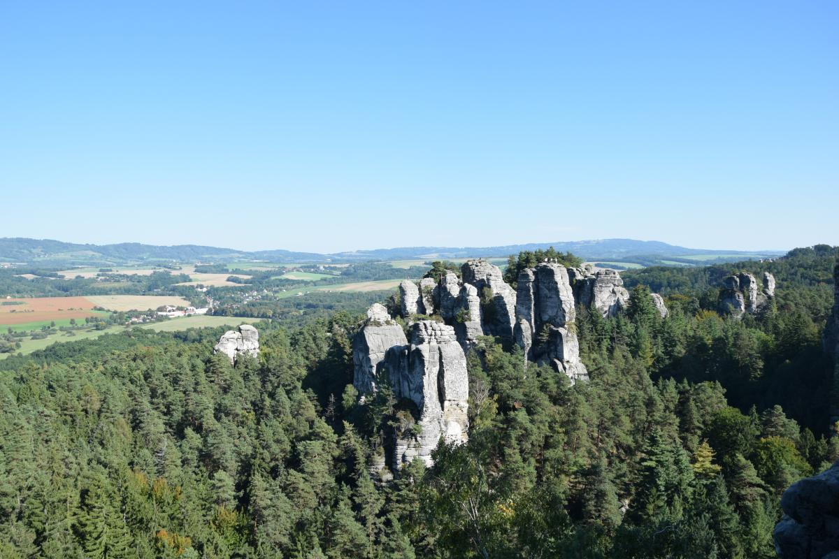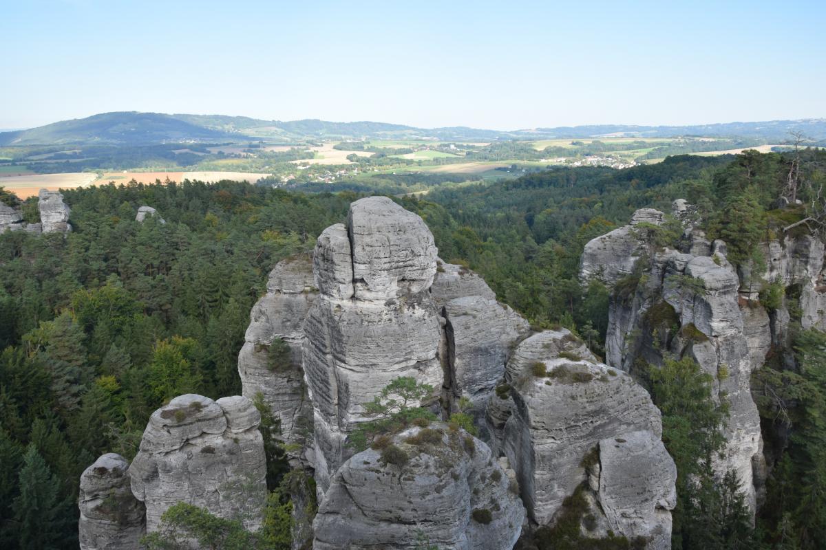 Spacer po Hruboskalskim Skale zapewnia niezapomniane wrażenia, zaczynając od zamku Hruba Skała, który przenosi w XIV-wieczną atmosferę. Widoki na piaskowcowe formacje i wąskie szczeliny zachwycają zarówno turystów, jak i wspinaczy. Szlak prowadzi przez Złotą Ścieżkę do hradu Valdštejn, a punkty widokowe, takie jak Janova vyhlídka czy wyhlídka u Lvíčka, oferują spektakularne panoramy. Wędrówka po labiryncie skalnych formacji to nie tylko przygoda, ale także inspiracja dla fotografów i miłośników natury. Historia, geologia i przyroda splatają się w tym magicznym miejscu, tworząc niepowtarzalny krajobraz Czeskiego Raju. Dla osób pragnących odkrywać tajemnice piaskowców, Hruba Skała to idealne miejsce pełne magii i niezwykłych doznań.