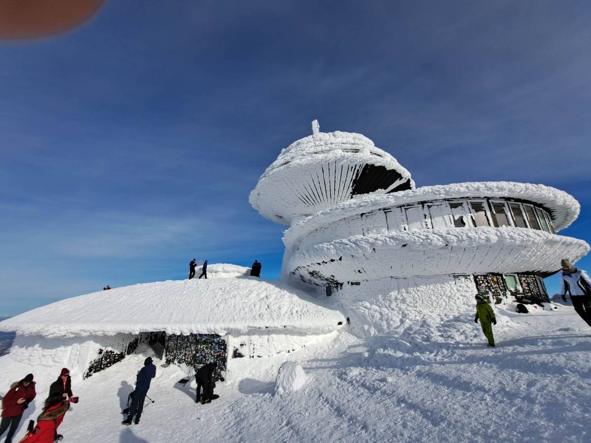Zdjęcia Wszystko dla zdjęcia. Nieodpowiedzialni turyści wchodzą na dach obserwatorium na Śnieżce. - fotorelacja