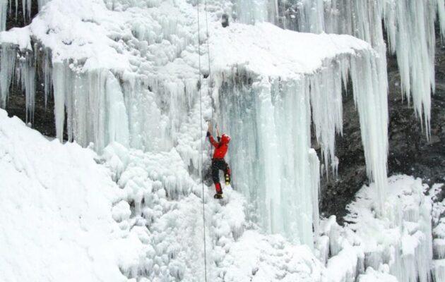 Zimowa ściana Karkonoszy. Lodospad w Labskim Dole przyciąga wspinaczy